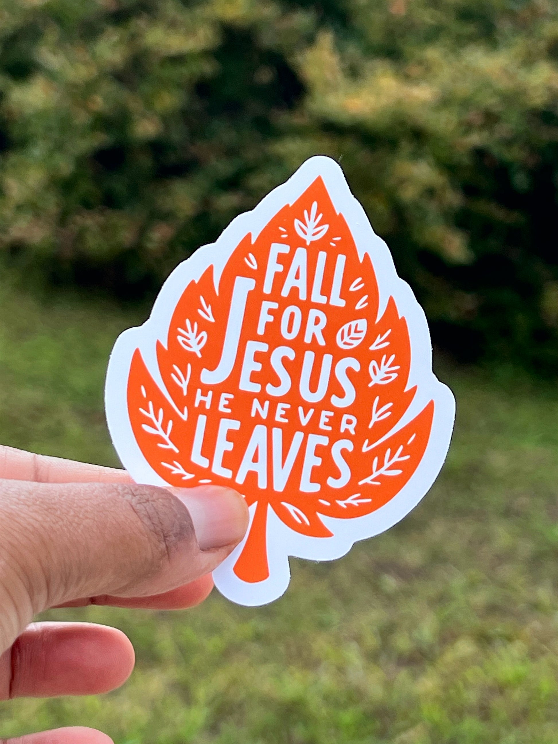Embrace the beauty of the season with this charming "Fall for Jesus" leaf-shaped sticker. Perfect for water bottles, journals, or laptops, this faith-inspired sticker adds a touch of autumn and a reminder of God’s grace to your everyday items. Durable and easy to apply, it's a simple way to share your faith and celebrate the season!