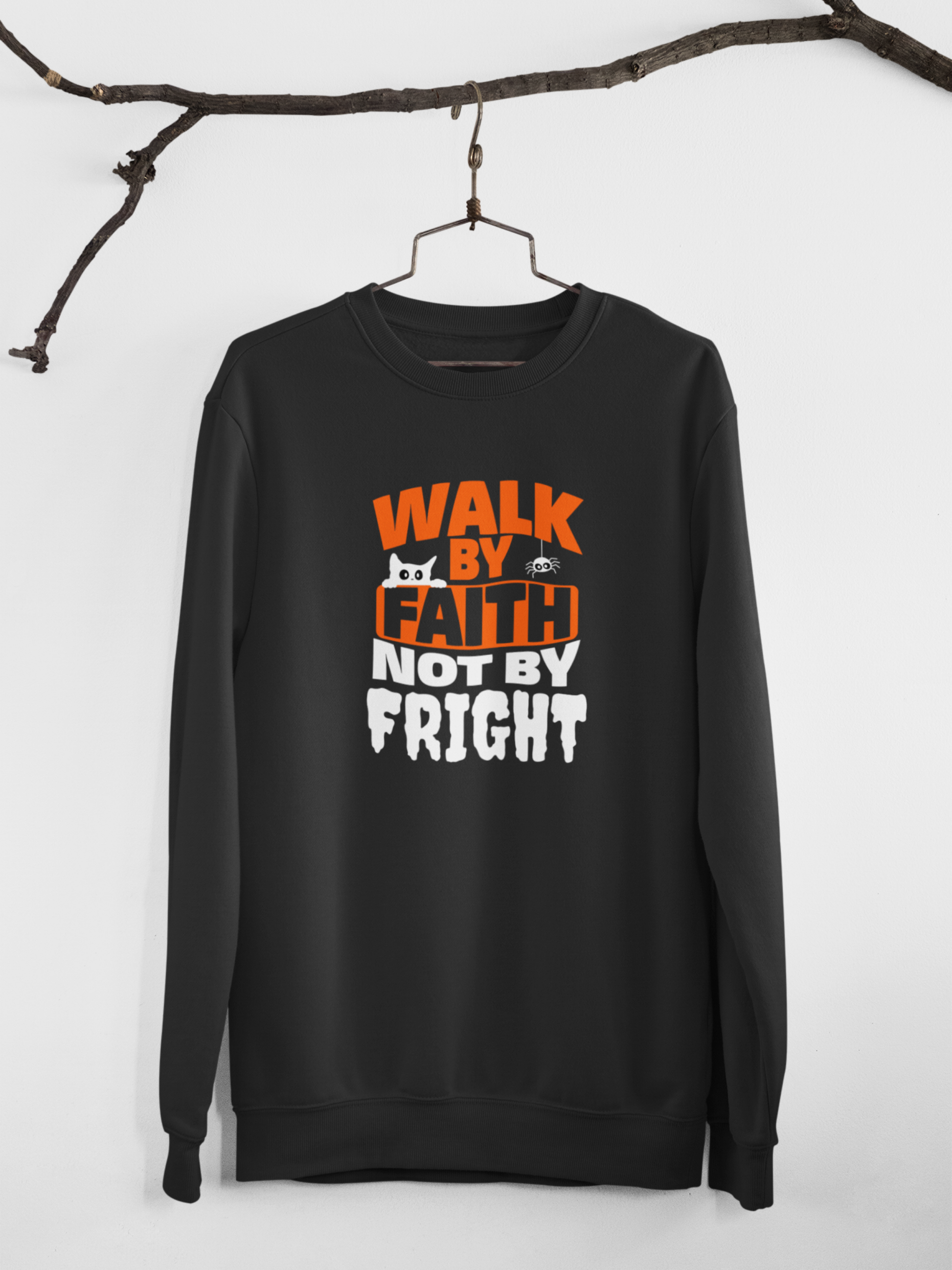 Stay cozy and share your faith this 'Fall-o-ween' season with our "Walk By Faith, Not By Fright" sweatshirt! This soft and stylish piece is perfect for fall. Ideal for bonfires, pumpkin patches, or trunk-or-treating, it's a great reminder to trust in God's guidance over fear. Whether you're gifting or treating yourself, this sweatshirt is a faith-filled way to celebrate the season!